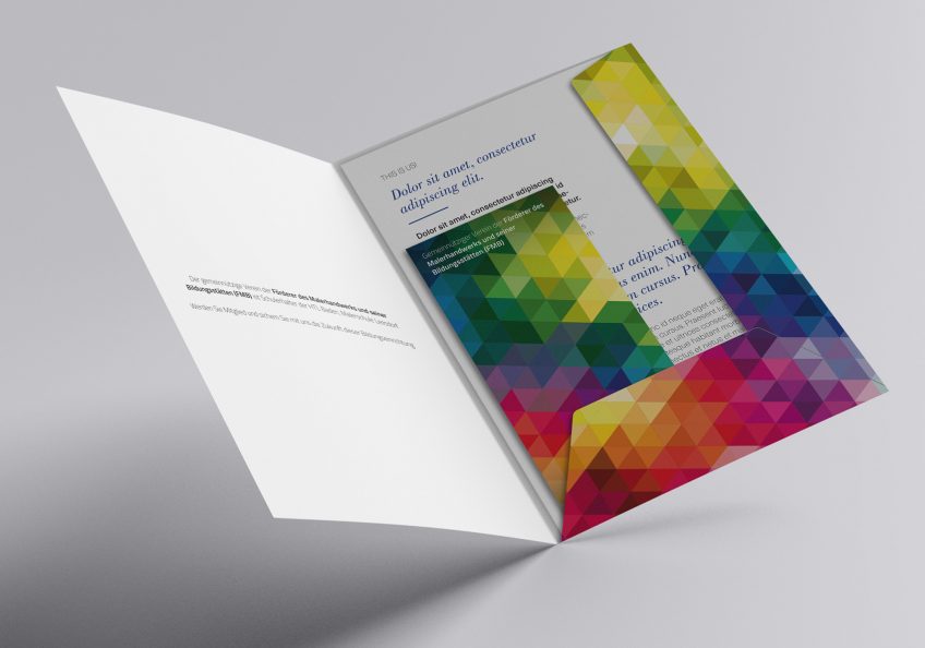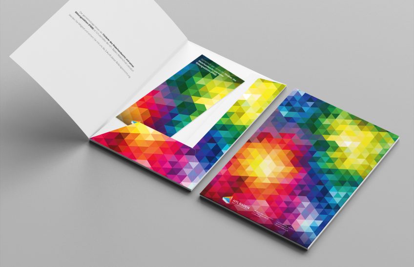 A graduate folder for the HTL Baden according to the motto „Tradition with future“. It advertises a membership in the Association of Promoters of the Painting Trade.