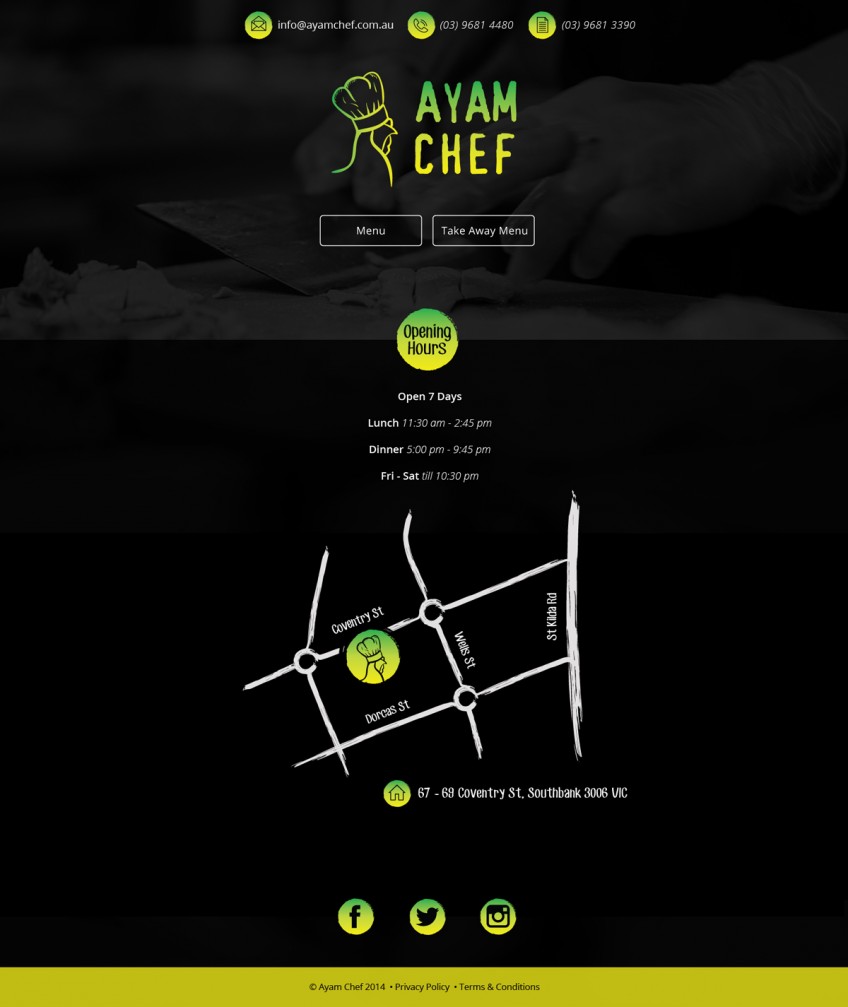 Web design for Ayam Chef – A new Malaysian restaurant in Melburne, Australia.